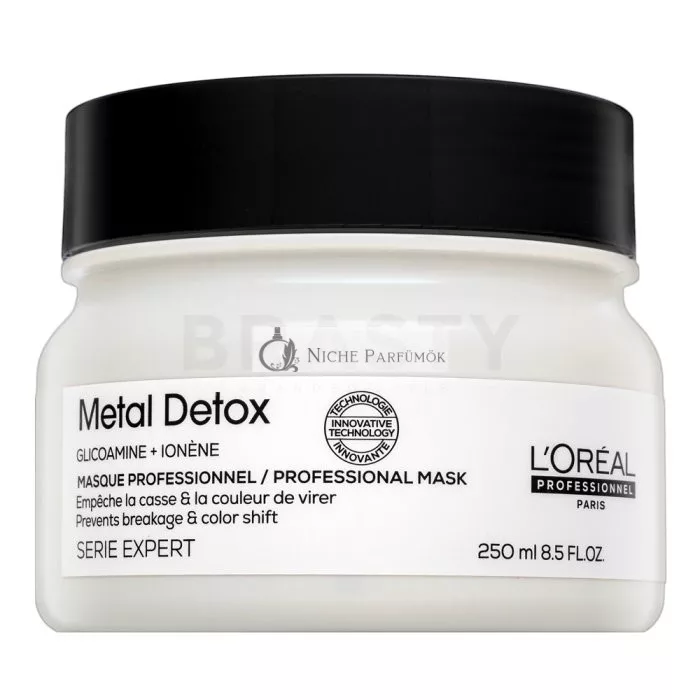 L'Oréal Professionnel Série Expert Metal Detox Professional Mask je vysoko účinná maska, ktorá poskytuje vlasom intenzívnu ochranu a lesk. Vďaka obsahu inovatívnych účinných látok, ako sú glicoamín a ionén, maska neutralizuje škodlivé kovové častice, chráni vlasy pred poškodením a zlepšuje ich celkový stav. Táto maska je ideálnou voľbou pre tých, ktorí chcú svoje vlasy chrániť pred škodlivými vplyvmi prostredia a zároveň zlepšiť ich vzhľad a zdravie.