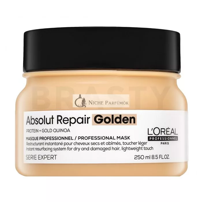 L'Oréal Professionnel Série Expert Absolut Repair Gold Quinoa + Protein Golden Masque je vynikajúcou voľbou pre tých, ktorí chcú obnoviť zdravie a silu svojich veľmi poškodených vlasov. Táto maska poskytuje intenzívnu výživu a hydratáciu, vďaka čomu budú vlasy nielen krásne, ale aj zdravé a vyživené. Jej jedinečné zloženie s quinoou a proteínmi zaručuje, že vlasy budú chránené pred poškodením a budú mať dlhotrvajúci lesk a hebkosť.