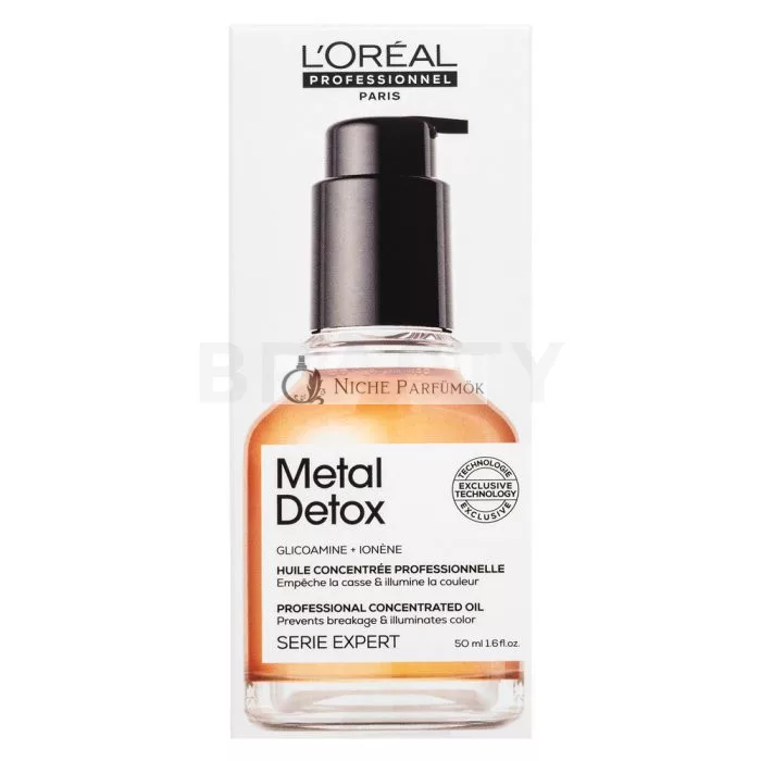 L'Oréal Professionnel Série Expert Metal Detox Professional Concentrated Oil je revolučný olej, ktorý bol špeciálne vyvinutý na zabezpečenie maximálnej ochrany a lesku farbených vlasov. Tento výrobok je súčasťou prestížneho radu Série Expert, ktorý sa zameriava na profesionálnu starostlivosť o vlasy s dôrazom na špecifické potreby farbených vlasov. Profesionálny koncentrovaný olej Metal Detox je určený na ochranu vlasov pred škodlivými účinkami kovových častíc, ktoré sa môžu nachádzať vo vode a v okolitom prostredí a ktoré často spôsobujú matnosť, lámavosť a stratu farby. Tento olej je ideálnou voľbou pre tých, ktorí si chcú dlhodobo udržať sviežu, lesklú a žiarivú farbu vlasov a zároveň ich chrániť pred poškodením.
