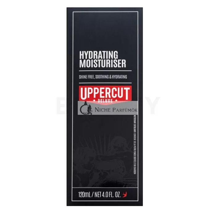 - Hydratačný hydratačný krém Uppercut Deluxe vďaka svojmu zloženiu poskytuje intenzívnu hydratáciu bez pocitu mastnoty a ťažkosti na pleti. Okamžite po aplikácii pleť osviežuje, vyhladzuje a dodáva jej zdravý vzhľad. Vďaka výťažkom zo zeleného čaju a uhorky má antioxidačné vlastnosti, ktoré pomáhajú spomaľovať proces starnutia a chrániť pleť pred negatívnymi vplyvmi prostredia. Krém je ideálny aj ako starostlivosť po holení, pretože zmierňuje podráždenie, začervenanie a nepríjemné pocity napnutej pokožky. Alantoín obsiahnutý v kréme urýchľuje regeneráciu drobných raniek a zabezpečuje dlhotrvajúci komfort pokožky. Pri pravidelnom používaní sa pokožka stáva pružnejšou, odolnejšou a získava prirodzene zdravý vzhľad.