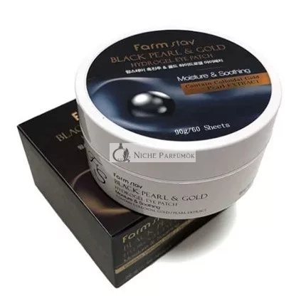 FARMSTAY Čierne a Perlové Zlato Hydrogelové Očné Pásky. Tieto anti-aging očné masky sú navrhnuté tak, aby bojovali proti známkam starnutia a únavy v jemnej oblasti okolo očí.